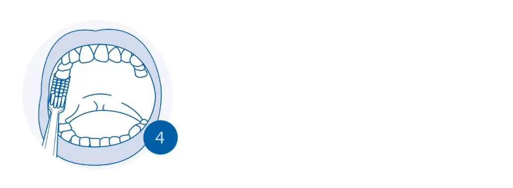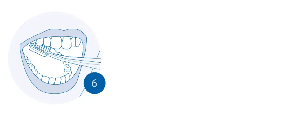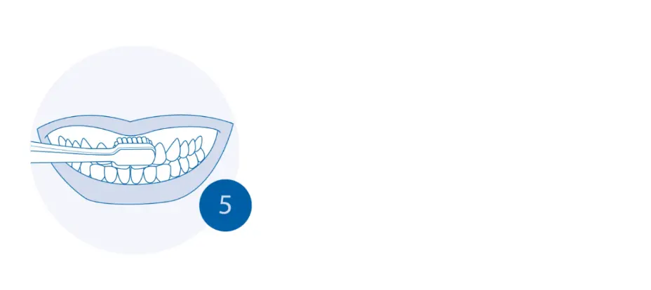 Şimdi çiğneme yüzeylerini fırçalama zamanı. Azı dişlerin düzensiz yüzeylerini temizlemek için küçük dairesel hareketler kullanın — arka azı dişlerin arka yüzlerini de unutmayın.